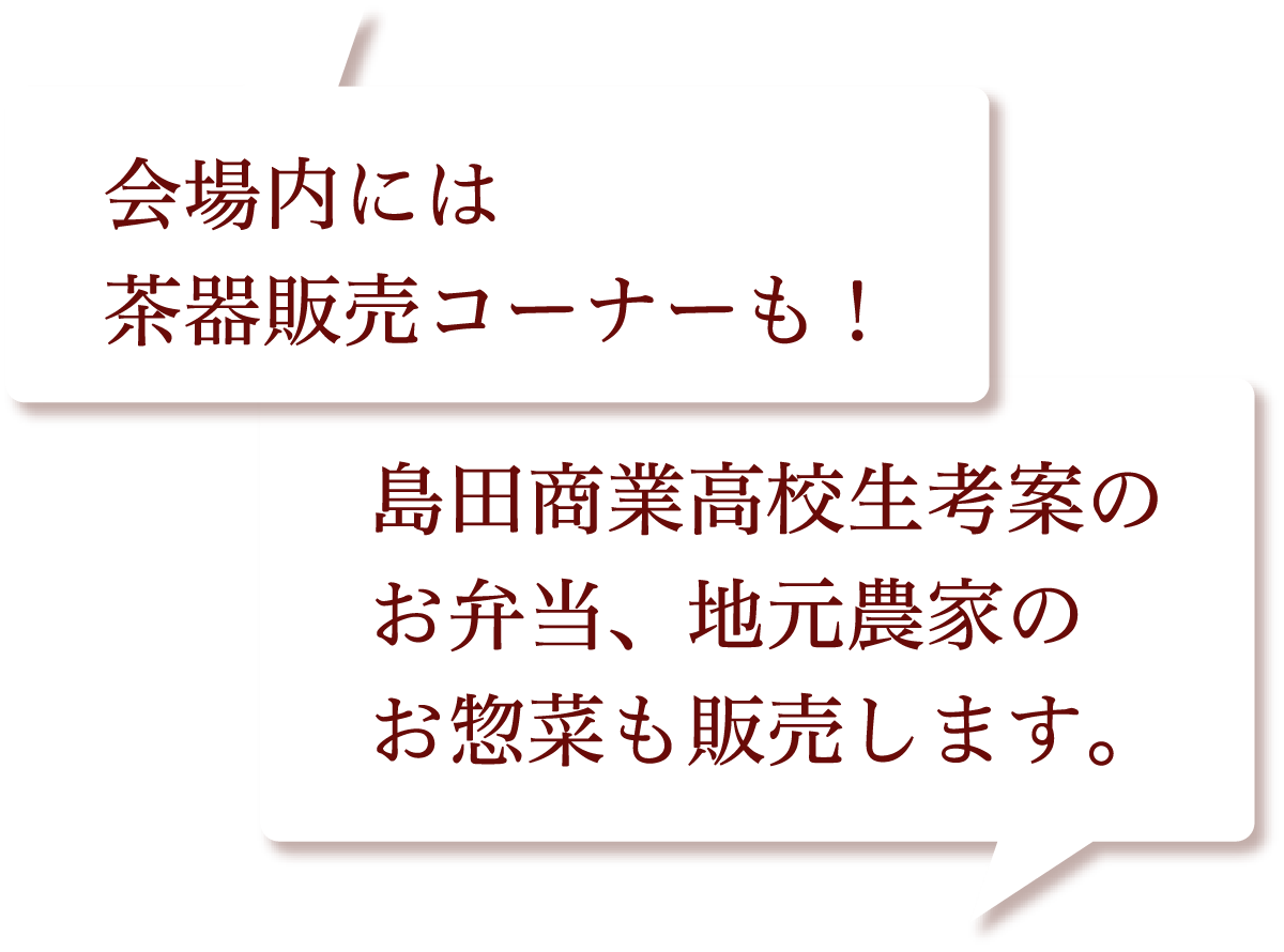 近年は全国で高く評価される地紅茶生産者を次々に輩出しているここ島田市で、市内外から集まる生産者自慢の紅茶を、存分にお楽しみください。