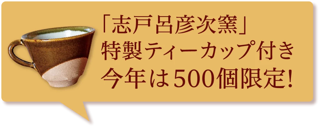 | 志戸呂焼 ティーカップ付き | ¥2,500 ※1 | ¥3,000 |