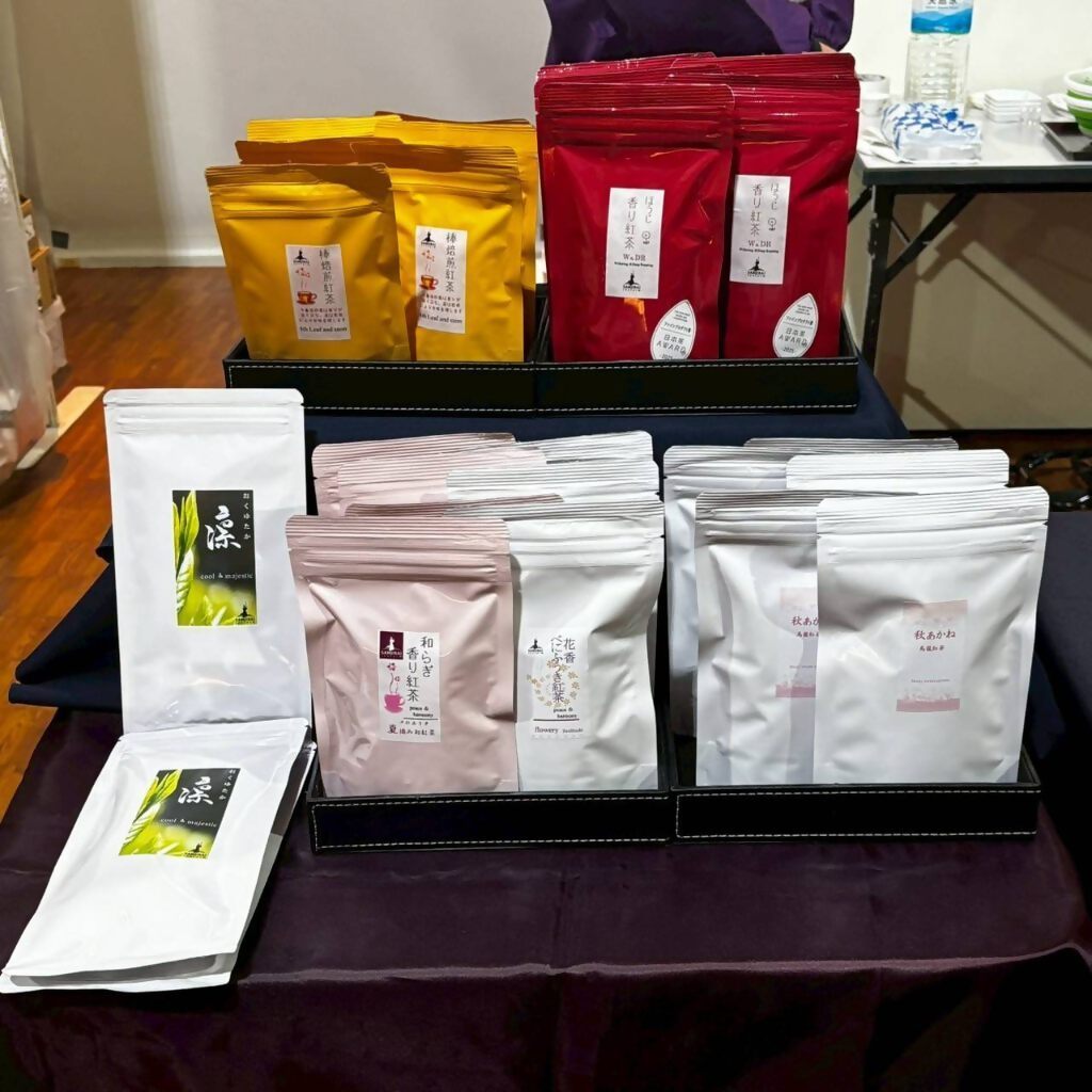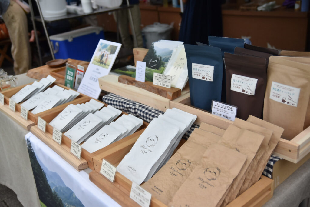 お茶の無料試飲、個包装された茶葉の販売
